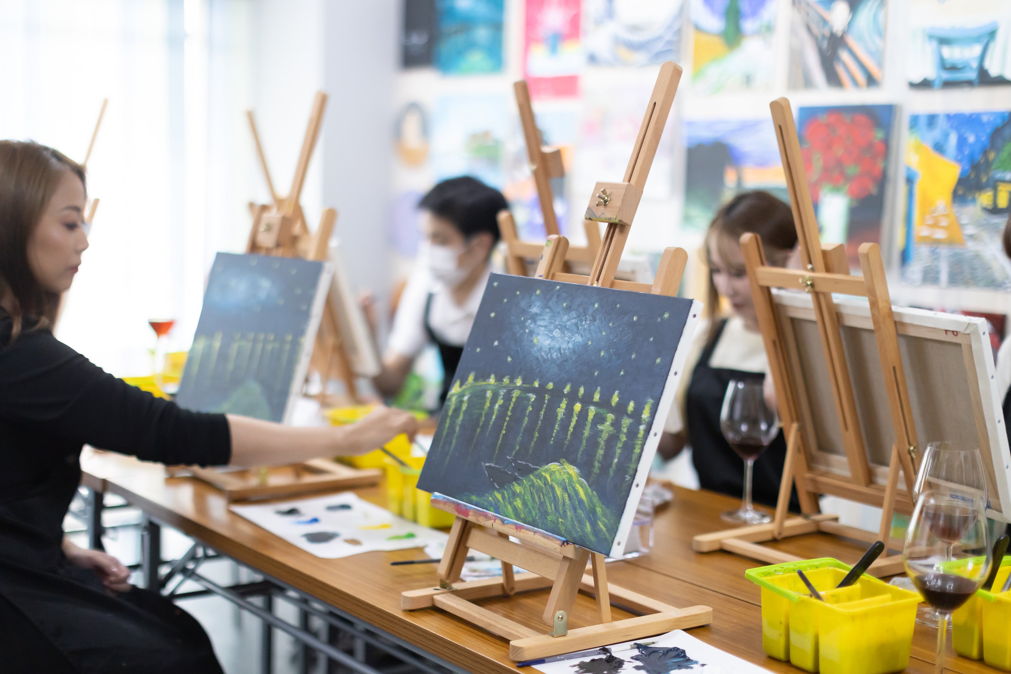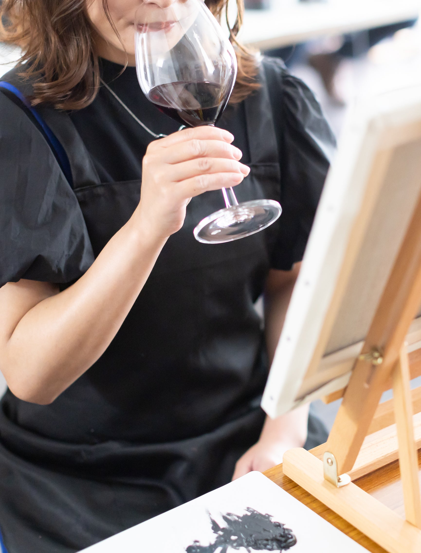 描く絵画や画家のテーマに合うワインを嗜みながら、楽しく作品を制作していきます。お酒の味を楽しみながら描く作品には、自然とあなただけのオリジナリティが生まれ実名画より魅力的で味のあるアート作品が生まれるかもしれません。